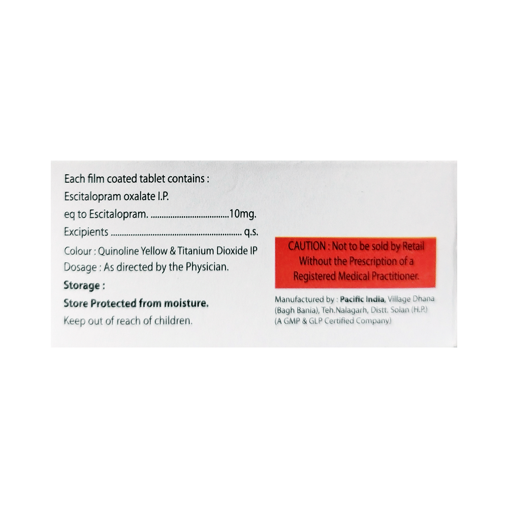 Salt Composition: Escitalopram Oxalate (10mg)