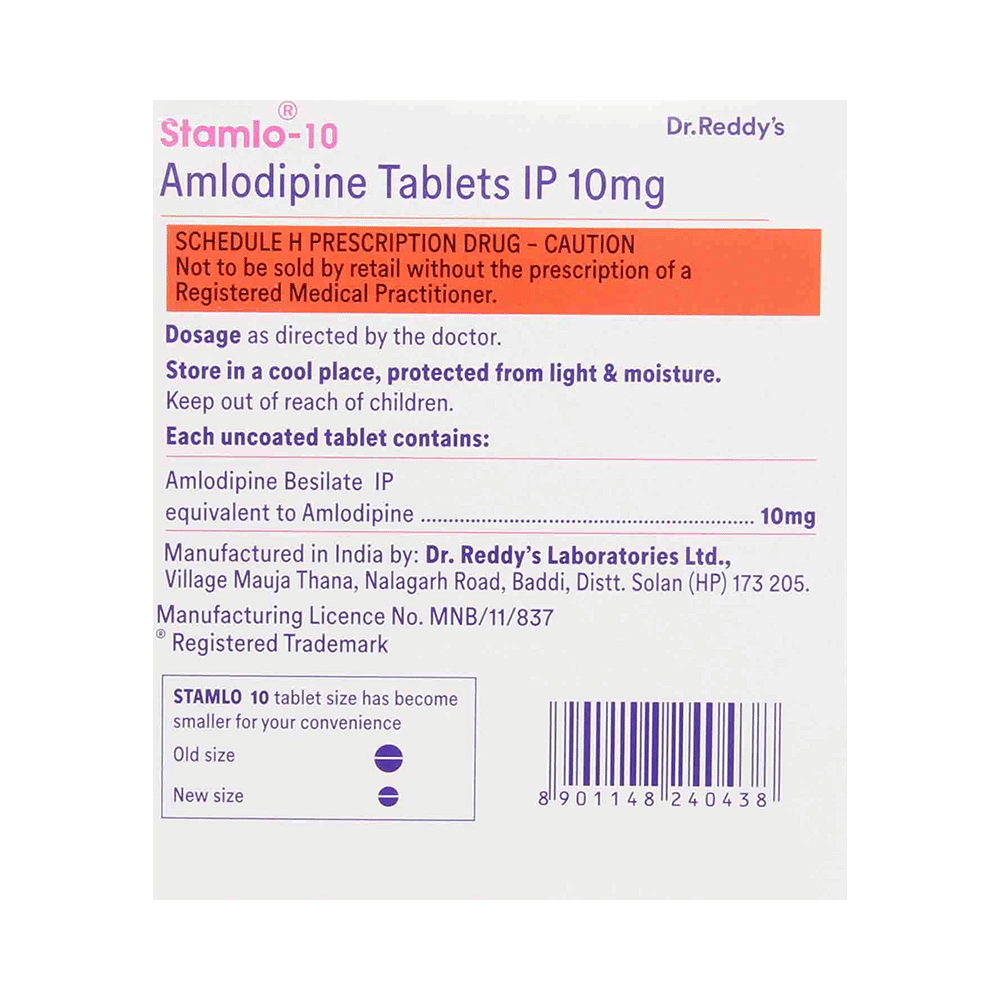 Take this medicine in the dose and duration as advised by your doctor. Swallow it as a whole. Do not chew, crush or break it. Stamlo 10 Tablet may be taken with or without food, but it is better to take it at a fixed time.
