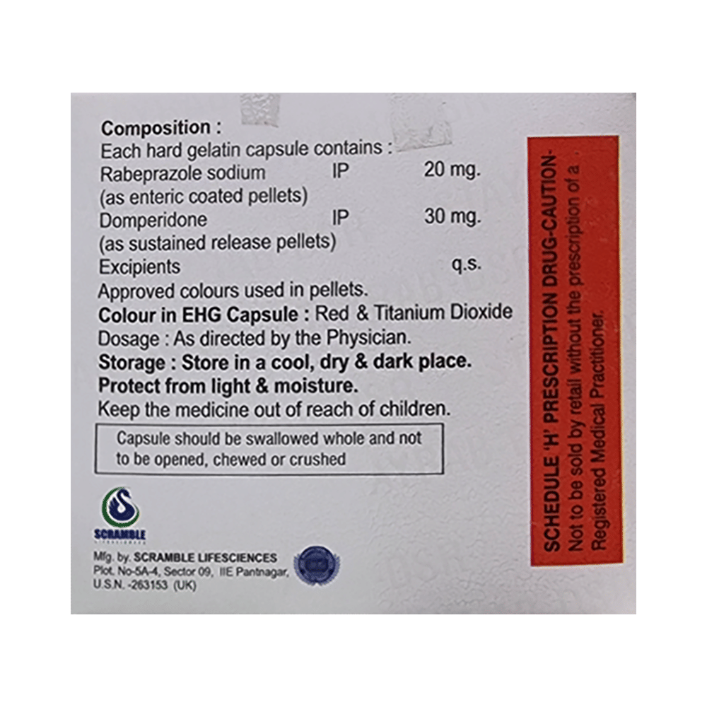 Salt Composition: Domperidone (30mg) + Rabeprazole (20mg)