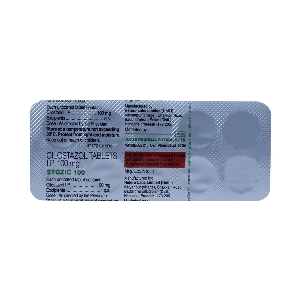 Stozic 100mg Tablet widens the blood vessels and decreases the stickiness of the platelets, thereby increasing the blood flow to the lower limbs.
