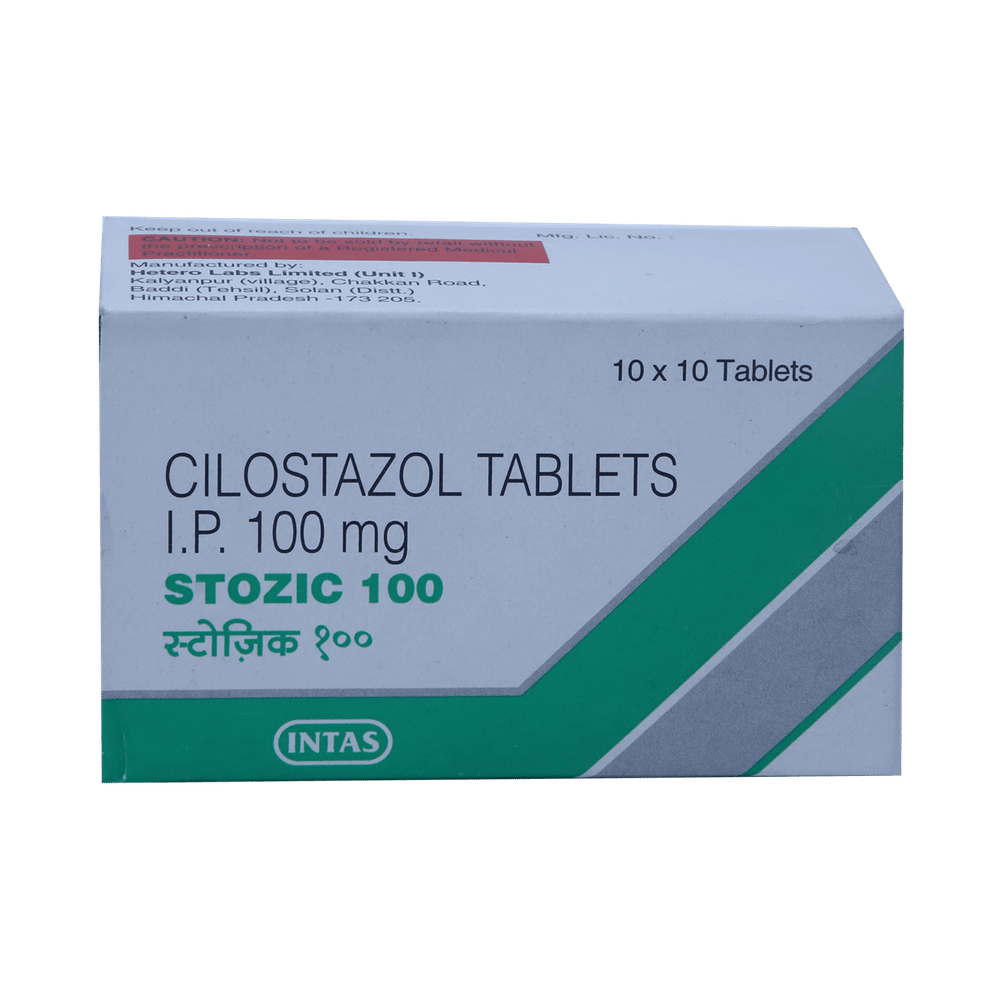 In Treatment of Intermittent claudicationIntermittent claudication refers to muscle pain on mild exertion (ache, cramp, numbness, or sense of fatigue), classically in the calf muscle, which occurs during exercise or even walking, and it gets better with a short period of rest. Stozic 100mg Tablet helps relieve this pain in the legs that is caused due to disturbed blood supply in the legs. It helps prevent the formation of blood clots, improves blood flow, and maintains the free-flowing of blood in your body. Keep taking Stozic 100mg Tablet as prescribed by the doctor to get maximum benefit.