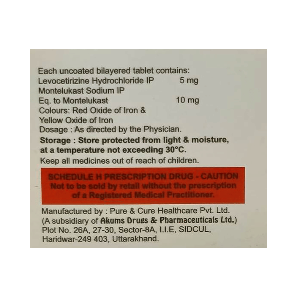 Salt Composition: Levocetirizine (5mg) + Montelukast (10mg)