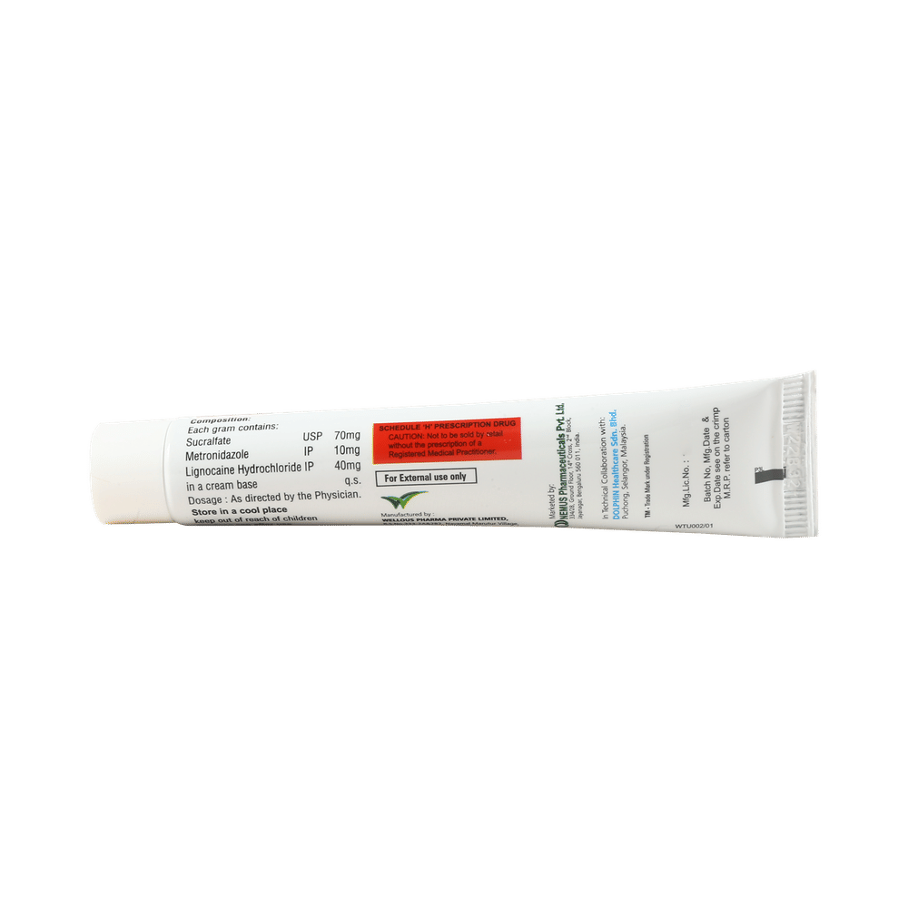Salt Composition: Lidocaine (4% w/w) + Metronidazole (1% w/w) + Sucralfate (7% w/w)