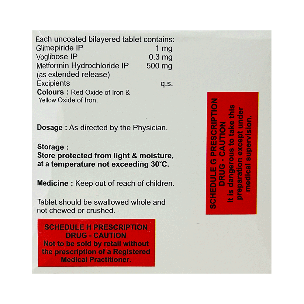 Salt Composition: Glimepiride (1mg) + Metformin (500mg) + Voglibose (0.3mg)