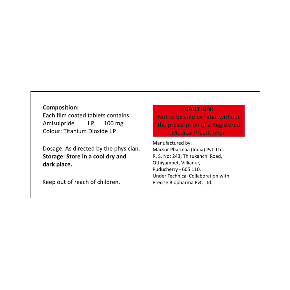 Salt Composition: Amisulpride (100mg)