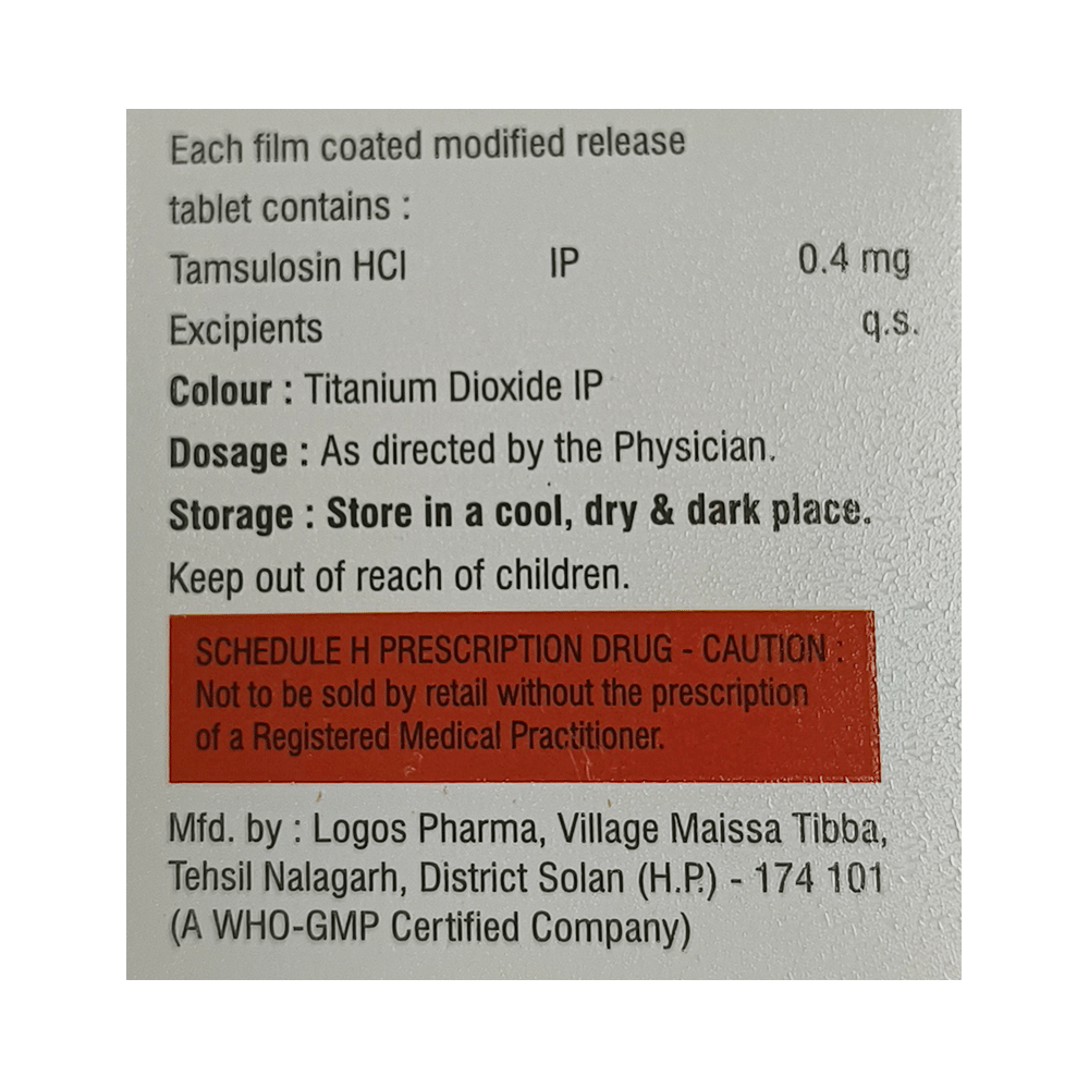 In Treatment of Benign prostatic hyperplasiaWhen your prostate gland becomes enlarged it can cause urinary problems such as difficulty passing urine and a need to go to the toilet frequently or urgently. It can also cause urine flow to be slower. If not treated, there is a risk that your urine flow will be completely blocked. T-Flow 0.4 Tablet MR works by relaxing muscles in the bladder and prostate. So, it can rapidly relieve the symptoms and make it easier for you to urinate. However, it may take up to 6 months to notice the full benefit. Take this medicine exactly as prescribed for maximum benefits.