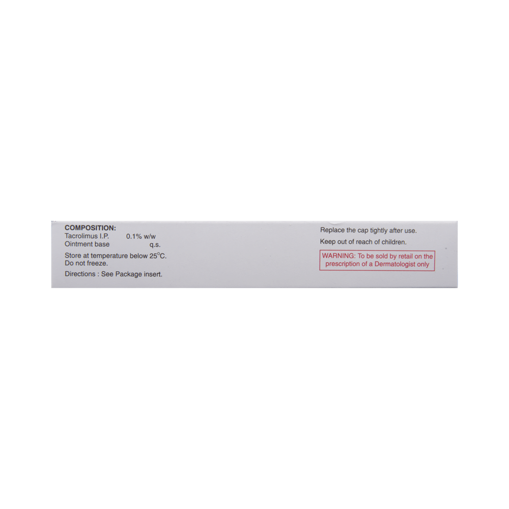 Tacroz Forte Ointment is used to treat eczema (atopic dermatitis). It works by suppressing the activity of certain immune cells that cause inflammation (redness and swelling) of the skin. This relieves itching and improves rashes in atopic dermatitis. Tacroz Forte Ointment is used for external use. It should be used 2-4 times a day on the affected area or use it as suggested by the doctor. It should be applied slowly and evenly to the skin until it is rubbed in. You should not use it too often and you should not cover the treated area with a bandage or plaster. You must inform your doctor if there’s no improvement even after two weeks of treatment or if the skin gets worse.Use of this medicine may cause some common side effects like erythema, headache, inflammation of hair follicle, and application site reaction like burning, irritation, itching, and redness. This medicine is not normally recommended during pregnancy or while breastfeeding unless it is clearly needed.