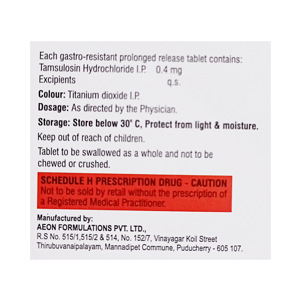 Salt Composition: Tamsulosin (0.4mg)