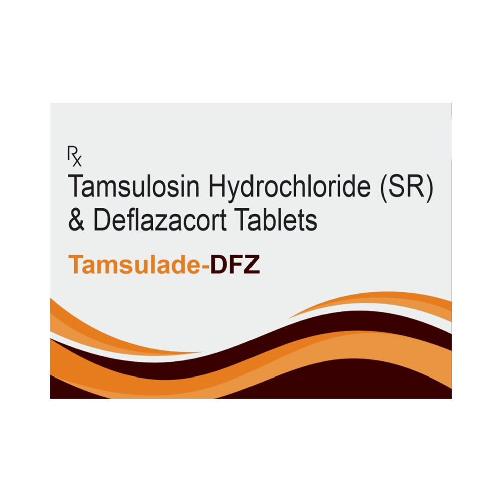 Tamsulade-DFZ Tablet SR is a combination of two medicines: Tamsulosin and Deflazacort. Tamsulosin is an alpha-blocker. It works by relaxing the muscle around the bladder exit and prostate gland so as to allow easy passage of urine. Deflazacort is a steroid medicine. It works by reducing inflammation (swelling) in the kidneys to promote the passage of the stones through urine.