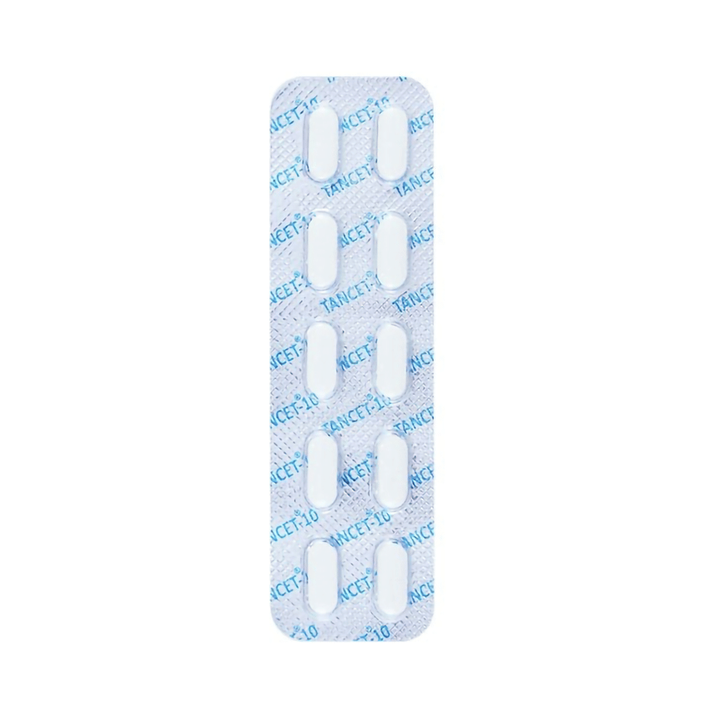 Tancet 10mg Tablet is an antihistaminic medication. It treats allergy symptoms such as itching, swelling, and rashes by blocking the effects of a chemical messenger (histamine) in the body.