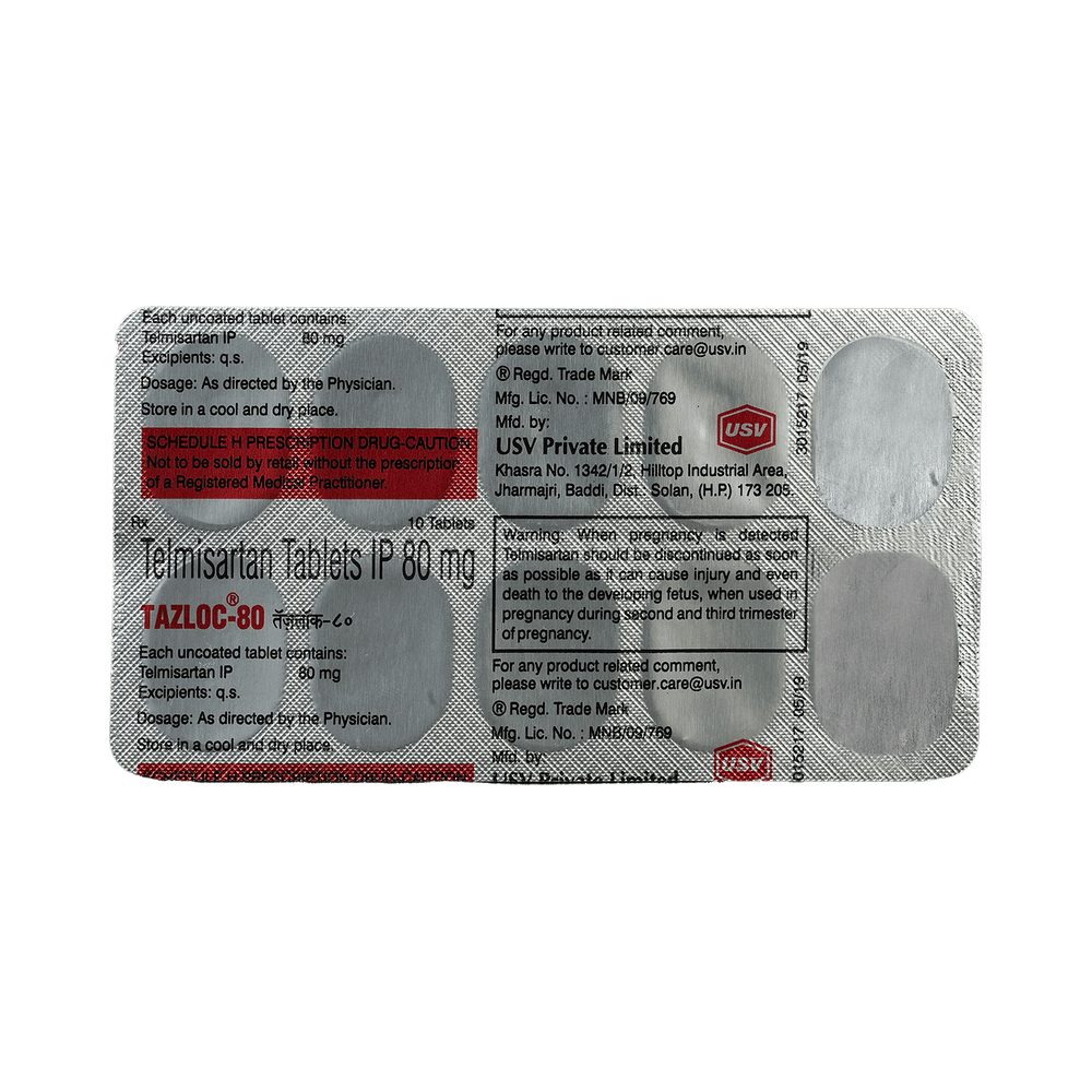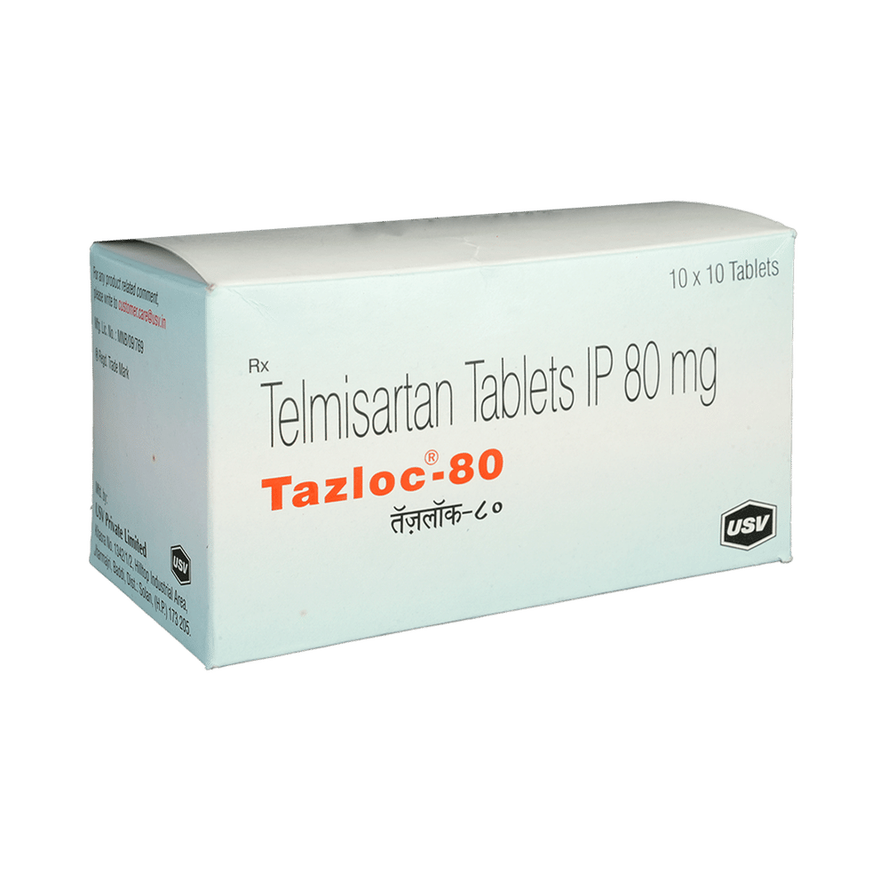In Treatment of Hypertension (high blood pressure)TAZloC 80 Tablet helps lower blood pressure by relaxing blood vessels, making it easier for the heart to pump blood. When taken regularly as prescribed by the doctor, it helps reduce the risk of complications like kidney damage, heart disease, and stroke.In Heart FailureTAZloC 80 Tablet helps in heart failure by relaxing blood vessels, reducing blood pressure, and easing the strain on the heart. This improves blood flow, making it easier for the heart to pump blood efficiently. It also helps reduce fluid buildup in the body, preventing swelling and shortness of breath, common symptoms of heart failure. Additionally, TAZloC 80 Tablet protects the heart by lowering the risk of further damage. It is often used as an alternative for patients who cannot tolerate ACE inhibitors, such as Ramipril, due to side effects like a persistent cough. While not the first-choice treatment for heart failure, doctors may prescribe TAZloC 80 Tablet, when appropriate, to support heart function and alleviate symptoms.In Prevention of Prevention of heart attack and strokeTAZloC 80 Tablet helps manage high blood pressure and reduces the strain on the heart. It also minimizes the likelihood of plaque rupture, blood clots, and vessel blockages, all of which are major contributors to heart attacks and strokes. When taken regularly in the right dosage with a proper diet and healthy lifestyle, it helps prevent heart attack and stroke, especially in individuals with additional risk factors like diabetes.show moreshow less