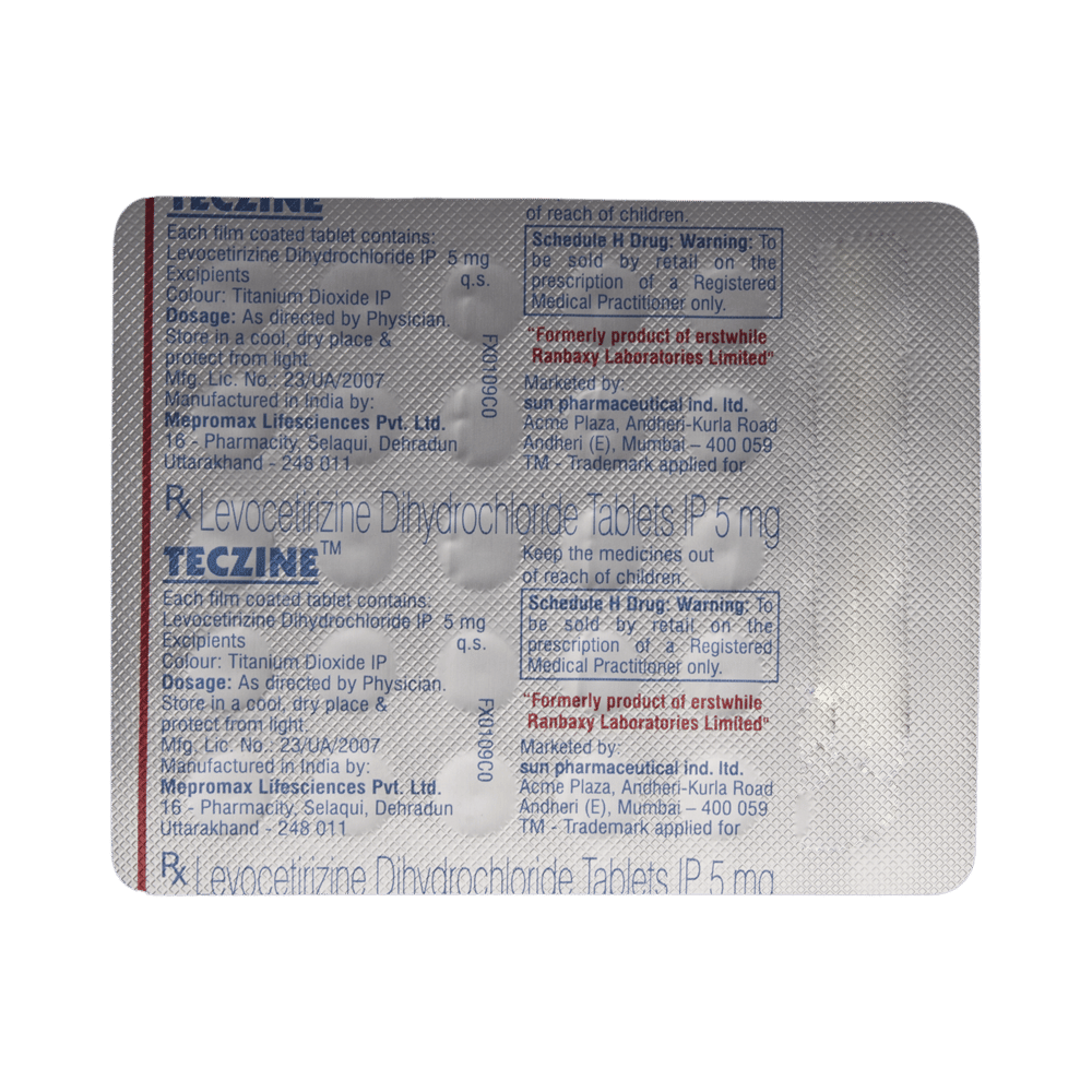 Teczine CP Tablet is an antihistaminic medication. It treats allergy symptoms such as itching, swelling, and rashes by blocking the effects of a chemical messenger (histamine) in the body.