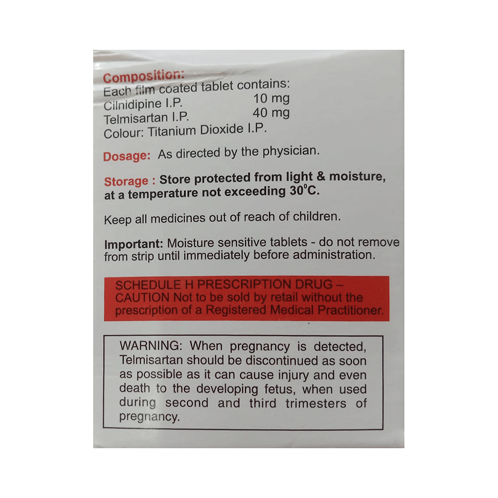 Salt Composition: Cilnidipine (10mg) + Telmisartan (40mg)