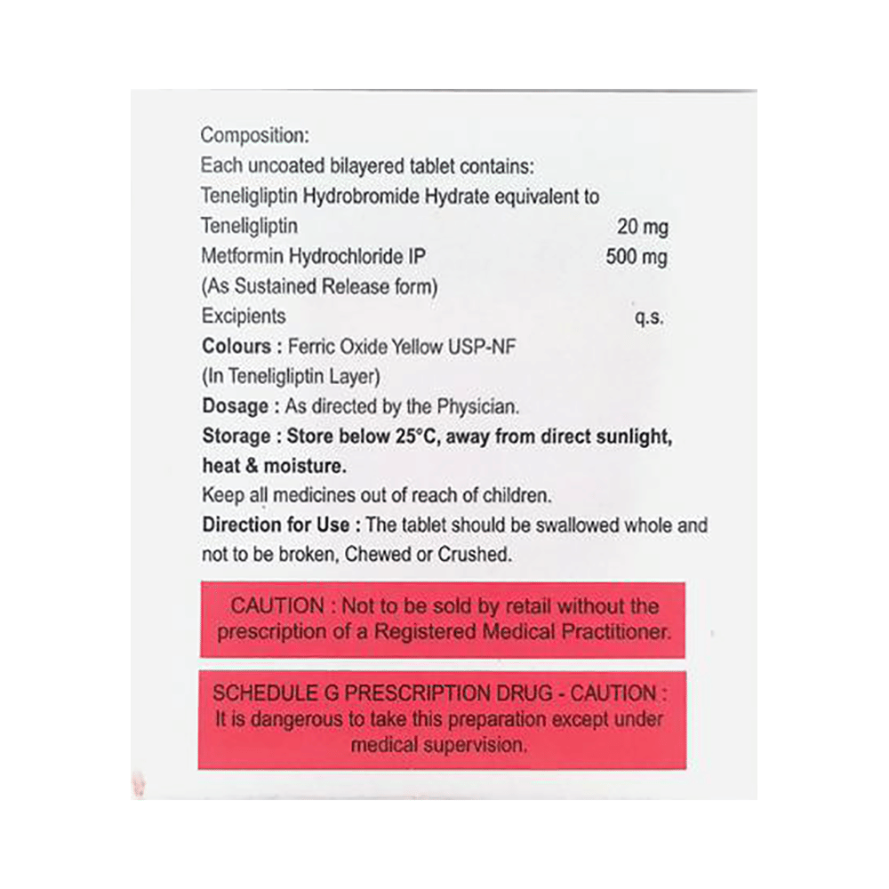 Salt Composition: Metformin (500mg) + Teneligliptin (20mg)