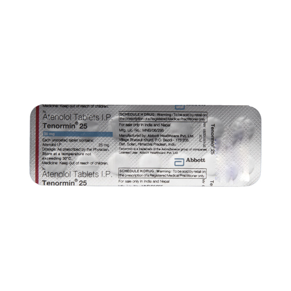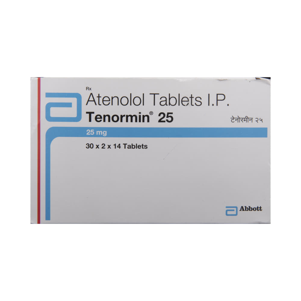 In Treatment of Angina (heart-related chest pain)Tenormin 25 Tablet relaxes the blood vessels so that blood can flow more easily around your body and makes sure that your heart is getting a good supply of oxygen. This makes it less likely that you will suffer chest pain caused by angina. This medicine can help increase your ability to exercise and go about your daily life more easily by reducing the frequency of angina attacks. You should take it regularly and as long as it is prescribed for it to work effectively.In Treatment of ArrhythmiaTenormin 25 Tablet is used to stabilize heart rhythms (particularly atrial fibrillation). It helps in normalizing an abnormal heart rhythm, preventing it occurring in the first place or slowing down the heart rate during an episode.In Prevention of Heart attackTenormin 25 Tablet helps lower your blood pressure and make it easier for your heart to pump blood around your body. This reduces the chances of you having a heart attack. It can also reduce the risk of dying if it is given immediately after a heart attack. This medicine needs to be taken regularly to be effective, so keep taking it even if you feel well. Do not stop without talking to your doctorIn Treatment of Hypertension (high blood pressure)Tenormin 25 Tablet works by blocking the effects of some chemicals on your heart and blood vessels. It slows down your heart rate and helps the heartbeat with less force. This lowers your blood pressure and helps in reducing your risk of having a stroke, a heart attack, other heart problems, or kidney problems in the future. This medicine needs to be taken regularly to be effective, so keep taking it even if you feel well. Do not stop without talking to your doctor.show moreshow less