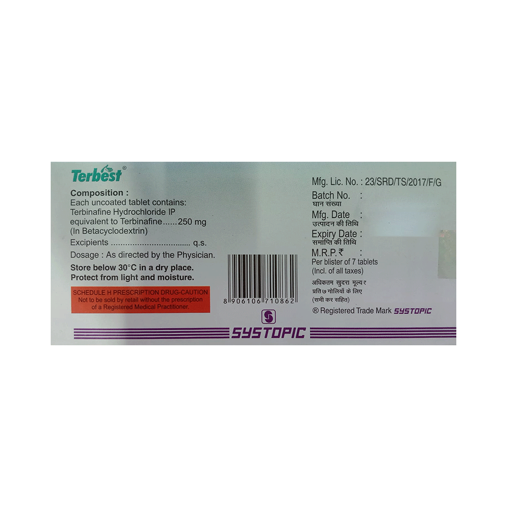 In Fungal infectionsTerBESt Tablet is an antifungal medicine. It works by killing and stopping the growth of fungus causing the infection. The dose and duration of treatment will depend on what you are being treated for. Make sure you complete the full dose your doctor has prescribed. This will ensure that the infection is completely cured and prevent it from returning.