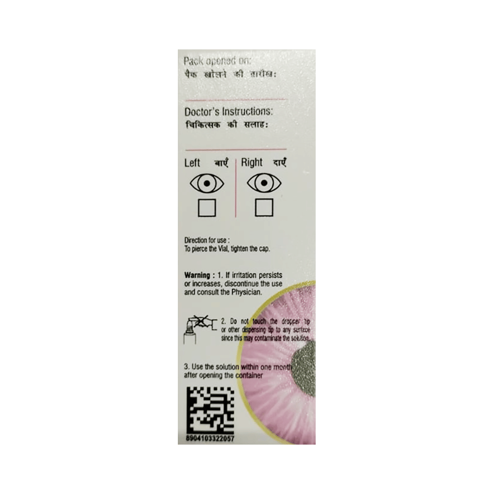 This medicine is for external use only. Take it in the dose and duration as advised by your doctor. Check the label for directions before use. Hold the dropper close to the eye without touching it. Gently squeeze the dropper and place the medicine inside the lower eyelid. Wipe off extra liquid.