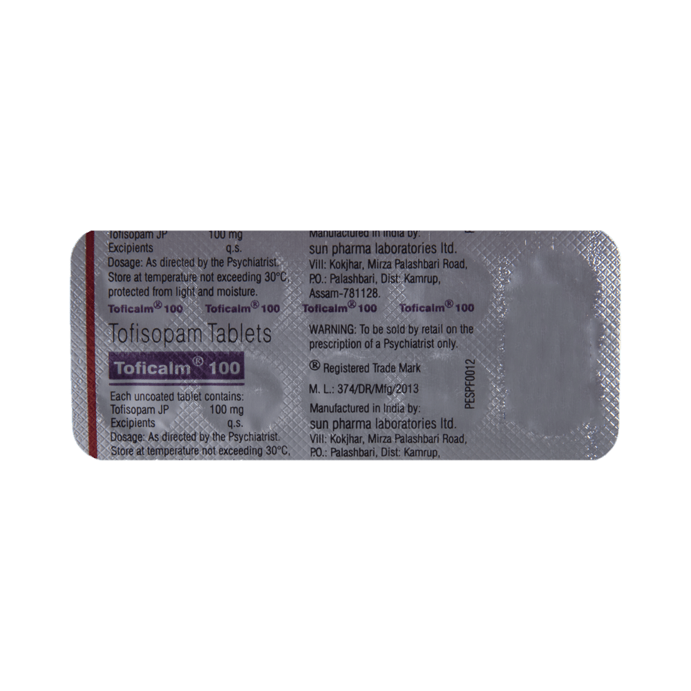 Toficalm 100 Tablet belongs to a class of medicines called benzodiazepines. It is used in the treatment of depression and anxiety associated with depression. It has a calming effect on the brain by relaxing the nerves, thus relieving the symptoms of anxiety. Toficalm 100 Tablet may be taken with or without food. However, take it at the same time each day as this helps to maintain a consistent level of medicine in the body. Take this medicine in the dose and duration as advised by your doctor as it has a high potential of habit-forming.If you have missed a dose, take it as soon as you remember and finish the full course of treatment even if you feel better. It is important that this medication is not stopped suddenly without talking to your doctor as it may cause nausea and anxiety. It should only be used for a limited period as long-term use of this medicine is not recommended.Toficalm 100 Tablet may cause loss of appetite, nausea, dry mouth, headaches, insomnia, and constipation. These are usually temporary and resolve on their own. Consult your doctor if these side effects bother you or do not go away. Do not operate heavy machinery or drive if you have taken this medicine until you know how it affects your body.It should be noted that in elderly patients this medicine may reduce muscle tone and increased the risk of falls. You should avoid alcohol intake while taking this medicine as it will increase drowsiness. Please inform your doctor if you are pregnant, planning to conceive or breastfeeding, before taking this medicine.