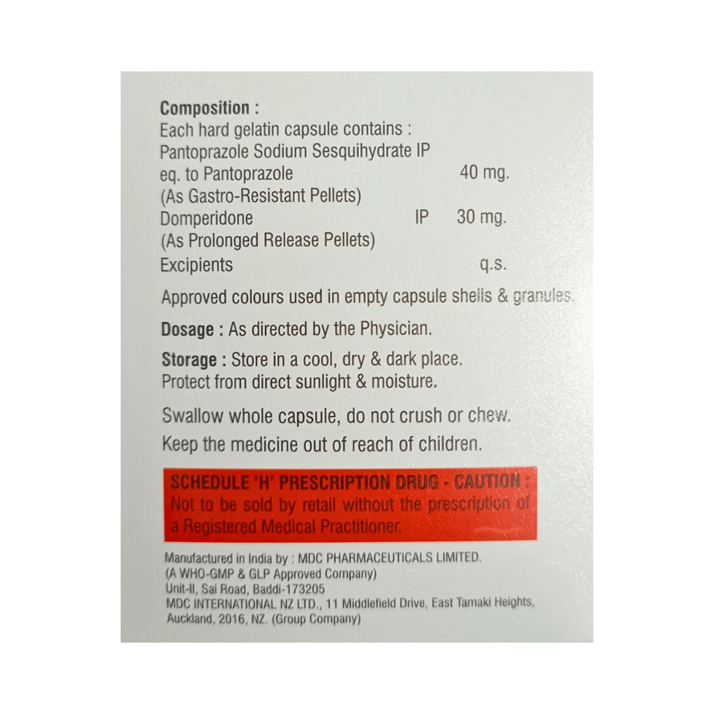 Salt Composition: Domperidone (30mg) + Pantoprazole (40mg)