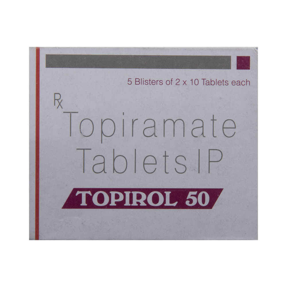 TOPirol 50 Tablet is a medicine used to treat epilepsy (seizures) and to prevent migraines. It is also used in the treatment of Lennox-Gastaut syndrome (a rare, but severe form of epilepsy that starts in early childhood). TOPirol 50 Tablet may be taken with or without food, preferably at the same time, each day. If you have missed a dose, take it as soon as you remember it and finish the full course of treatment even if you feel better. Stopping the medication suddenly without talking to your doctor may cause an increased frequency of seizures. Your doctor may advise regular monitoring of serum bicarbonate levels while you are taking this medicine.Some of the common side effects of this medicine include nausea, taste change, fatigue, diarrhea, weight loss, loss of appetite, and memory impairment. It may also cause vision problems like myopia or glaucoma, so it is important to get your eyesight checked before you start the treatment and regularly thereafter. You may experience dizziness and sleepiness, so do not drive or do anything that requires mental focus until you know how this medicine affects you. Please consult your doctor if these side effects bother you or do not go away.