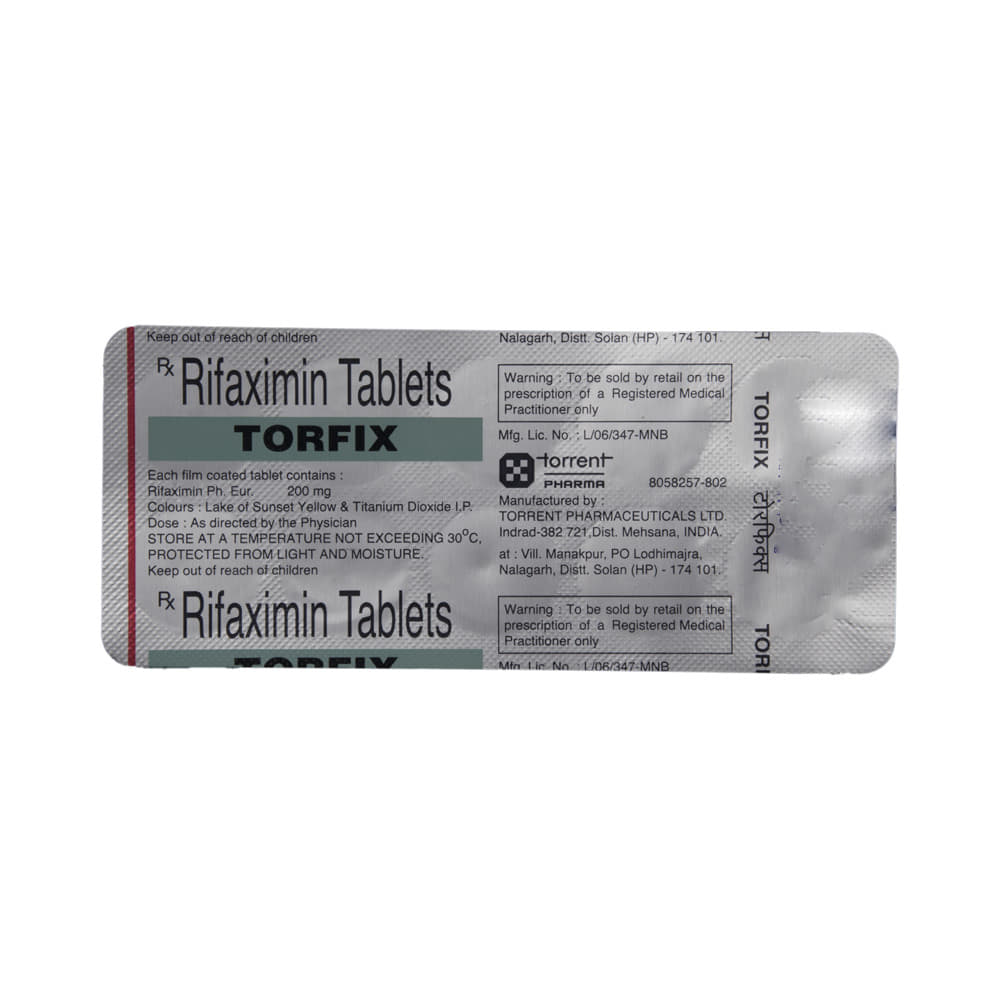 Torfix Tablet is an antibiotic medicine used to treat infectious diarrhea. It works by killing and stopping the growth of harmful bacteria in the intestines. This way it helps to get rid of the bad bacteria causing the infection, which in turn reduces the diarrhea. Torfix Tablet can be used alone or in combination with other medicines. It may be taken with or without food, preferably at the same time, each day. It should be used in the dose and duration as advised by the doctor. Take it at the same time each day to get the most benefit and you should keep on taking this medicine for as long as you are prescribed. Stopping it early may make the infection to come back and harder to treat.Some people may develop side effects like vomiting, headache, constipation, vomiting, fever, abdominal pain, and nausea. These side effects are usually temporary and go away during treatment as your body adjusts to the medicine. Consult your doctor if these side effects bother you or will not go away. Your urine may become reddish in color due to this medicine. But, it is normal and harmless.Before starting treatment with this medicine, you should tell your doctor if you are pregnant, breastfeeding or suffering from any liver, kidney or heart problems or if you are allergic to any medicine.