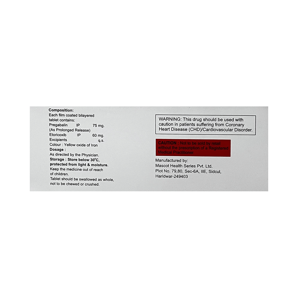 Salt Composition: Pregabalin (75mg) + Etoricoxib (60mg)