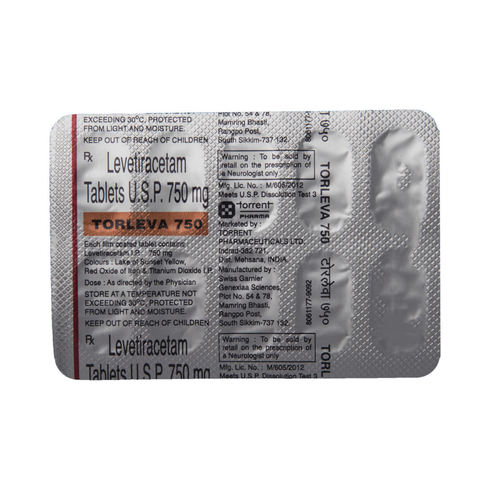 Torleva 750 Tablet is an anti-epileptic medicine used to treat seizures (fits) in epilepsy. It can be used alone or along with other medicines. It helps to prevent seizures for as long as you continue to take it. Torleva 750 Tablet suppresses the abnormal electrical activity in the brain. You can take it with or without food but try to take it at the same time each day to get the most benefit. The dose will depend on your condition and how you respond to the medicine. Your doctor will advise the right dose for you. It is generally advised as a long-term treatment. You should continue taking it for as long as your doctor has told you to, even if you feel well. If you stop or miss doses your seizures could get worse.Some common side effects of this medicine include headache, irritation, sleepiness, behavior changes, aggressive behavior, and decreased appetite. Side effects are more common during the first few weeks and usually lessen as your body gets used to the medicine. Most of these side effects do not need medical attention, but some of them can be serious. A small number of people being treated with this medicine have had thoughts of harming or killing themselves. Contact your doctor if your mood changes for the worse.Before taking it, you should tell your doctor if you have kidney problems, depression, or suicidal thoughts and if you are pregnant, planning to become pregnant, or breastfeeding. Your doctor may suggest regular blood tests to monitor your kidney function while taking this medicine.