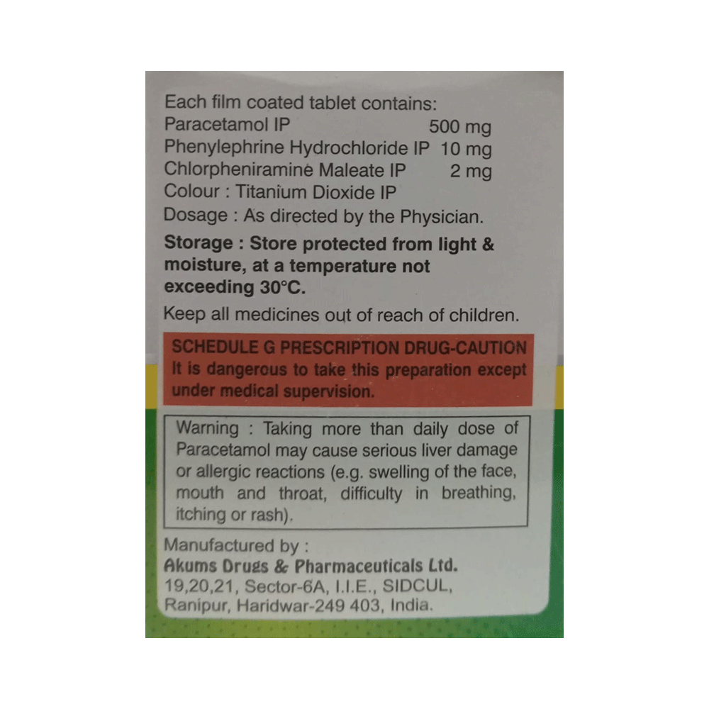 Salt Composition: Chlorpheniramine Maleate (2mg) + Paracetamol (500mg) + Phenylephrine (10mg)