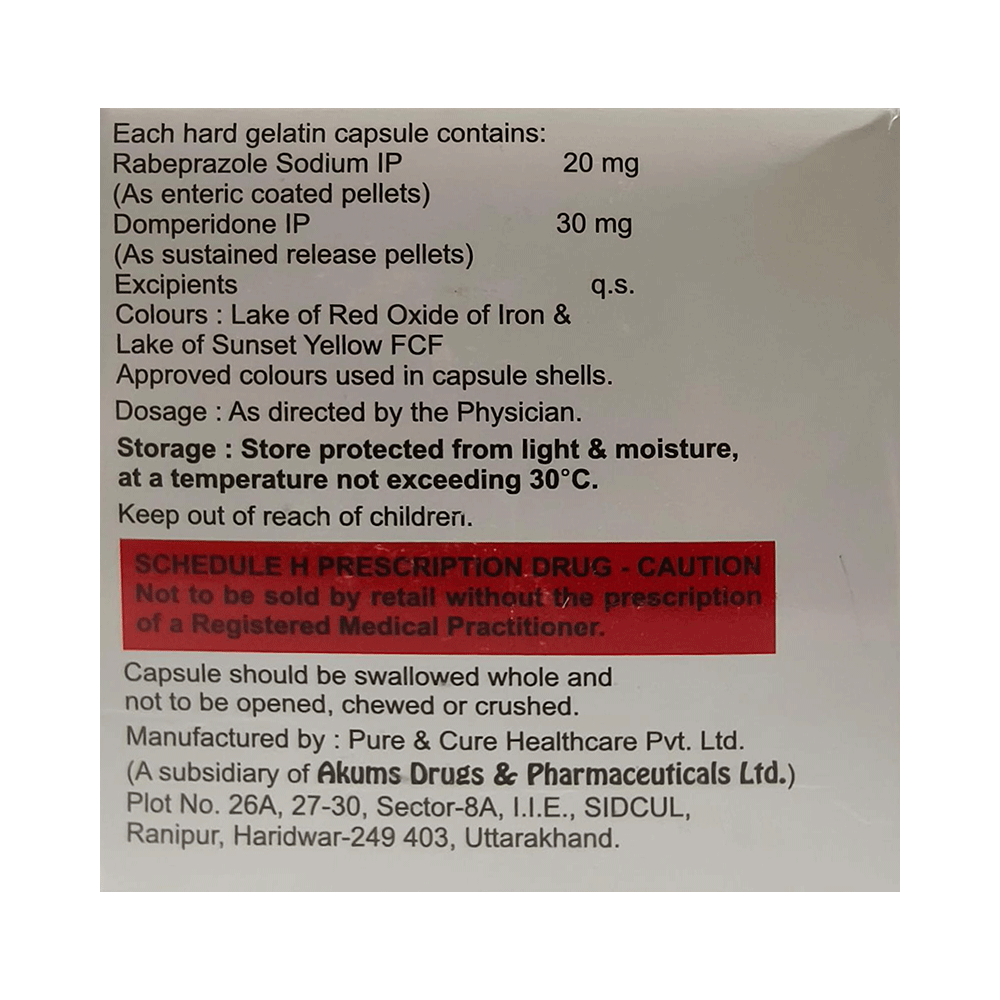 Salt Composition: Domperidone (30mg) + Rabeprazole (20mg)