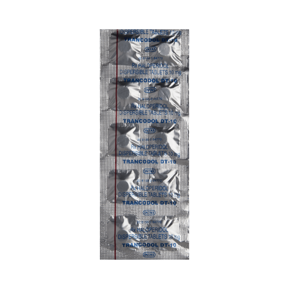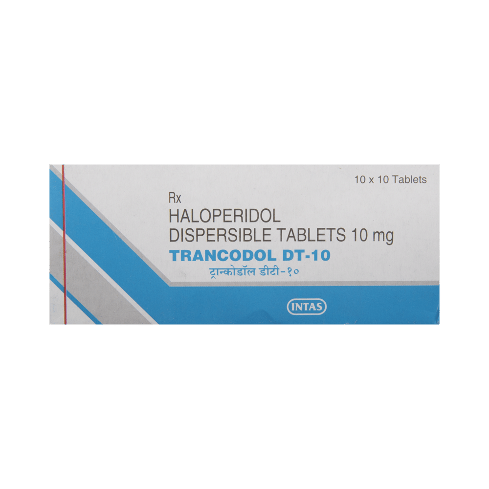 Trancodol DT 10 Tablet is used in the treatment of schizophrenia (a mental disorder in which a person develops unreal thoughts and behavior). It works by blocking the action of a chemical messenger in the brain that affects thoughts and mood. Trancodol DT 10 Tablet can also be used for treating psychosis, mania, severe behavior problems in adults and children. It may be taken with or without food, preferably at the same time each day. Take it at the same time each day as this helps to maintain a consistent level of medicine in the body. Take this medicine in the dose and duration as advised by your doctor and if you have missed a dose, take it as soon as you remember it. Do not skip any doses and finish the full course of treatment even if you feel better. This medication mustn't be stopped suddenly without talking to your doctor as it may worsen your symptoms.The most common side effects of this medicine include Agitation, insomnia, Extrapyramidal symptoms, muscle spasm, and headache. If any of these side effects bother you or get worse, let your doctor know. They may be able to suggest ways to reduce or prevent the side effects.Before taking it, inform your doctor if you are suffering from thyroid or kidney problems, epilepsy, Parkinson’s disease, glaucoma, or any heart problems. You should not take this medicine if you are under the influence of alcohol or any sleep-inducing, cough, and/ or allergy medication. This medicine can also lead to weight gain, eat a healthy balanced diet, avoid snacking with high-calorie food, and exercise regularly.