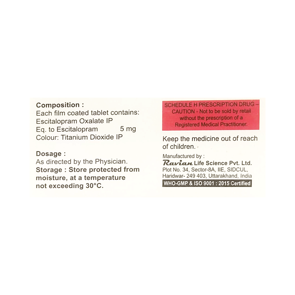 Salt Composition: Escitalopram Oxalate (5mg)
