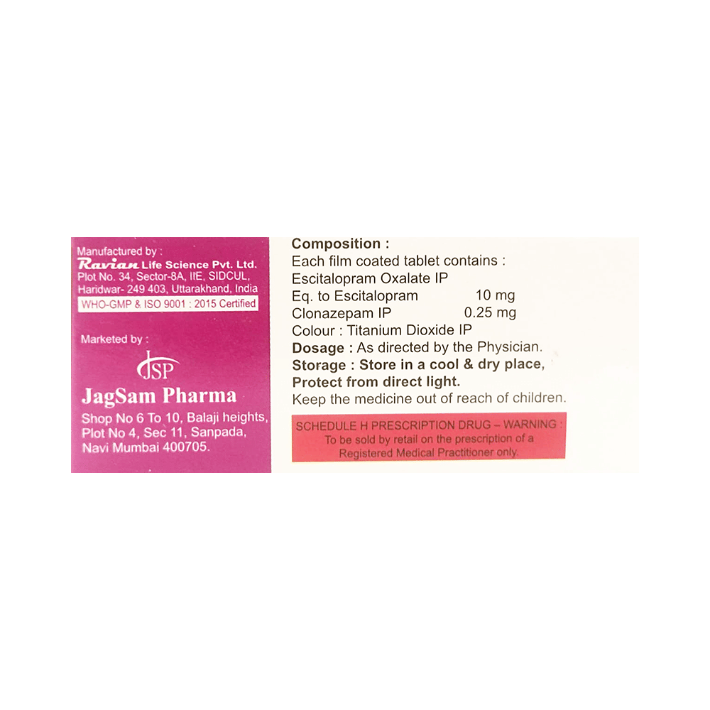 Salt Composition: Clonazepam (0.5mg) + Escitalopram Oxalate (10mg)