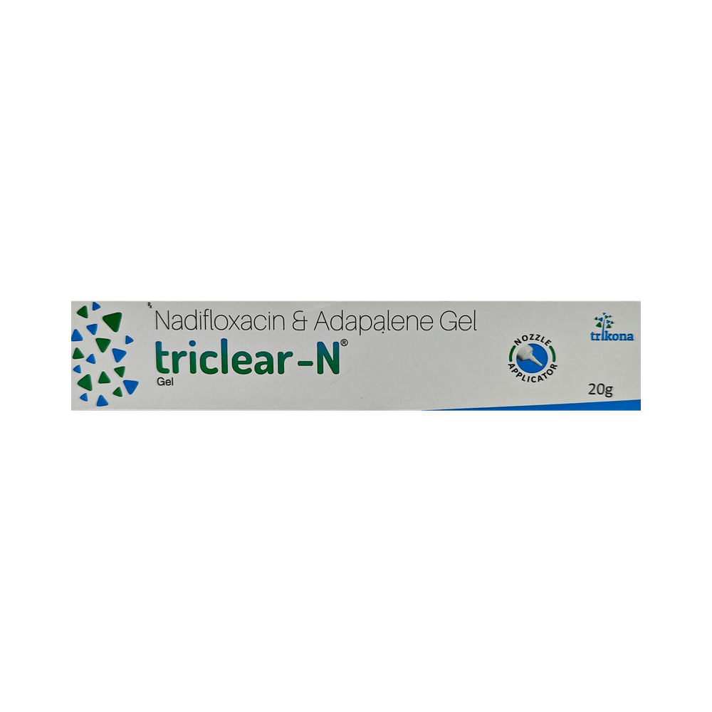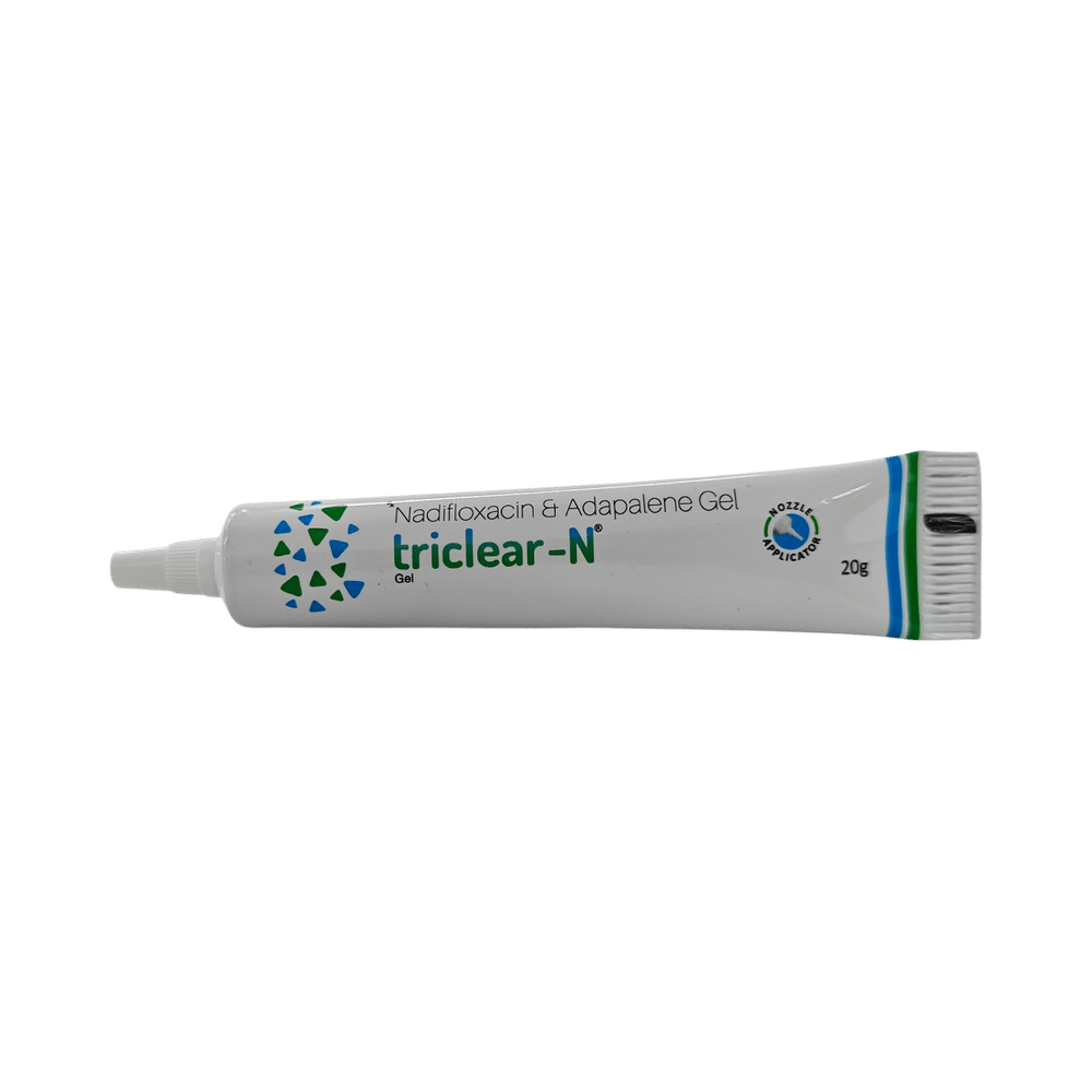 Triclear N Gel is a combination medicine that is used to treats acne. It minimizes excessive oil production, thus reduces inflammation. It also prevents the growth of the microorganisms that cause acne. This also helps to prevent pimples, blackheads, and whiteheads on the skin. Triclear N Gel is only meant for external use and should be used as advised by your doctor. A thin layer of the medicine should be applied only to the affected areas of the skin with clean and dry hands. Wash your hands before and after applying the medicine. If it gets into your eyes, nose, mouth, or vagina rinse with water. It may take several days to weeks for your symptoms to improve, but you should keep using this medicine regularly. The course of the treatment should be completed to ensure better efficacy of the medicine. If your condition does not improve or gets worse, you should talk to your doctor.This is usually a safe medicine, however, it may cause dryness, peeling, redness, and burning sensation at the application site. These side effects are usually mild and self-limiting. Most of these side effects can be prevented by using skin moisturizer and drinking plenty of water. Serious side effects are rare. You must consult the doctor if you experience any allergic reaction (rashes, itching, swelling, shortness of breath, etc.).Before using this medicine, it is important to tell your doctor if you are taking or have recently taken any other medicines for the same disease or other diseases. Pregnant and breastfeeding women should use this medicine with proper consultation and caution. If you are a known allergic to the medicine, you must refrain from using this medicine and consult your doctor. During the course of the treatment, do not touch, prick or scratch the infected skin areas as this may worsen or spread the acne. Avoid unnecessary sun exposure and use a sunscreen before stepping out in the sun. It is also advised, not to receive any cosmetic procedures without asking your doctor.