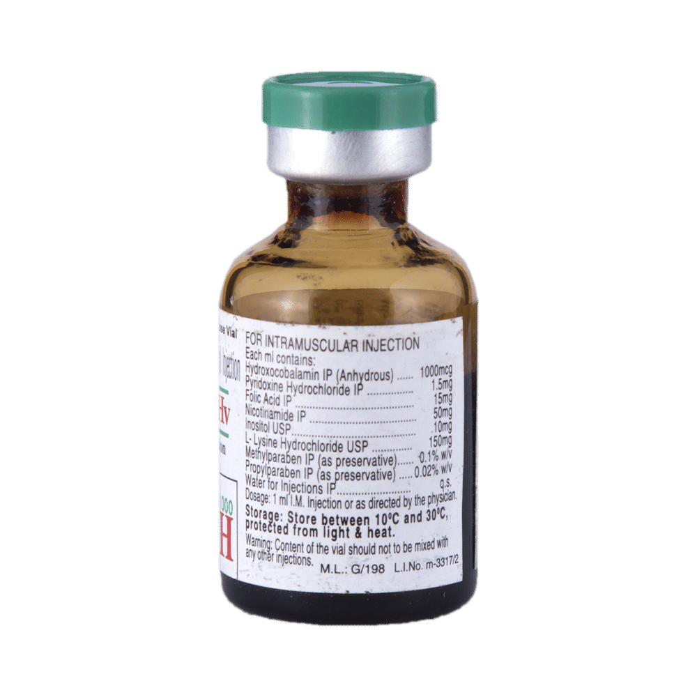 Trineurosol HV Injection is a combination of six nutritional supplements: Hydroxocobalamin, Vitamin B6 (Pyridoxine), Folic Acid, Nicotinamide, Inositol, and L-Lysine. Altogether they provide essential nutrients for the proper functioning of organs and adequate growth of the body.