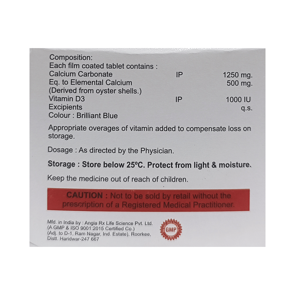 Salt Composition: Calcium (500mg) + Vitamin D3 (1000IU)