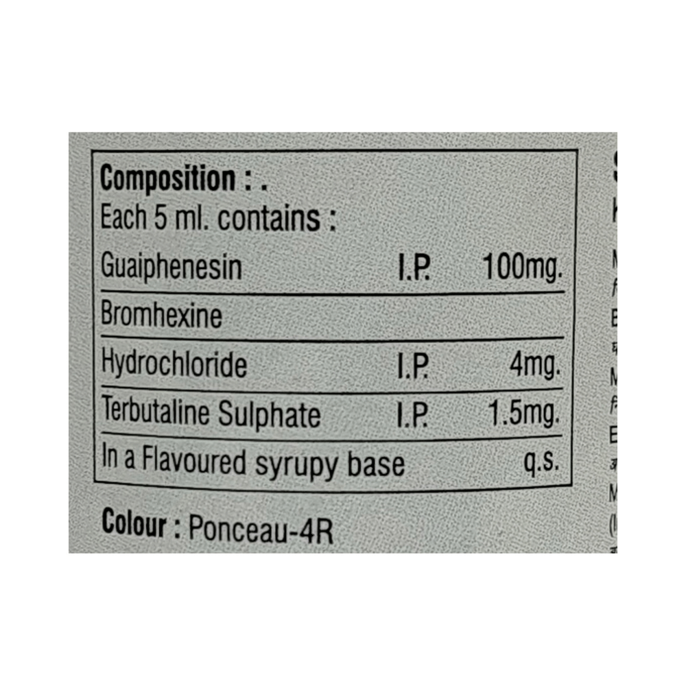 Salt Composition: Guaifenesin (100mg) + Terbutaline (1.5mg) + Bromhexine (4mg)