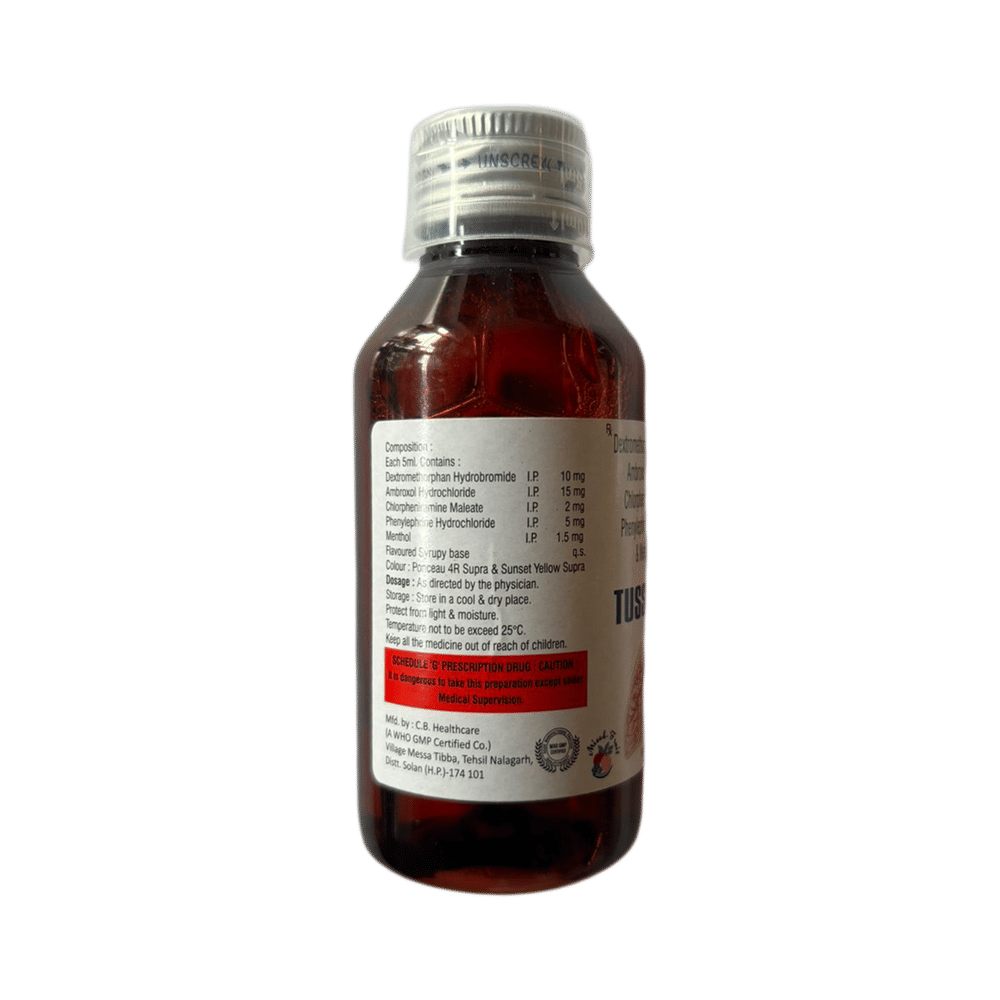 Salt Composition: Ambroxol (15mg/5ml) + Dextromethorphan Hydrobromide (10mg/5ml) + Phenylephrine (5mg/5ml) + Chlorpheniramine Maleate (2mg/5ml) + Menthol (1.5mg/5ml)