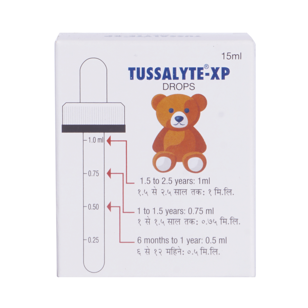 Tussalyte-XP Drop is a combination medicine used in the treatment of cough with mucus. It thins mucus in the nose, windpipe, and lungs, making it easier to cough out. It also provides relief from runny nose, sneezing, itching, and watery eyes. Tussalyte-XP Drop is taken with or without food in a dose and duration as advised by the doctor. The dose you are given will depend on your condition and how you respond to the medicine. You should keep taking this medicine for as long as your doctor recommends. If you stop treatment too early your symptoms may come back and your condition may worsen. Let your healthcare team know about all other medications you are taking as some may affect, or be affected by this medicine.The most common side effects are nausea, diarrhea, stomach pain, vomiting, muscle cramp, headache, skin rash, and increased heart rate. Most of these are temporary and usually resolve with time. Contact your doctor straight away if you are at all concerned about any of these side effects. This medicine can also cause sleepiness, so do not drive or do anything that requires mental focus until you know how this medicine affects you. Avoid drinking alcohol while taking this medicine as it can make sleepiness worse.Never support self-medication or recommend your medicine to another person. It is beneficial to have plenty of fluids while taking this medication. Before taking this medicine, you should tell your doctor if you are pregnant, planning pregnancy, or breastfeeding. You should also tell your doctor if you have any kidney or liver diseases so that your doctor can prescribe a suitable dose for you.