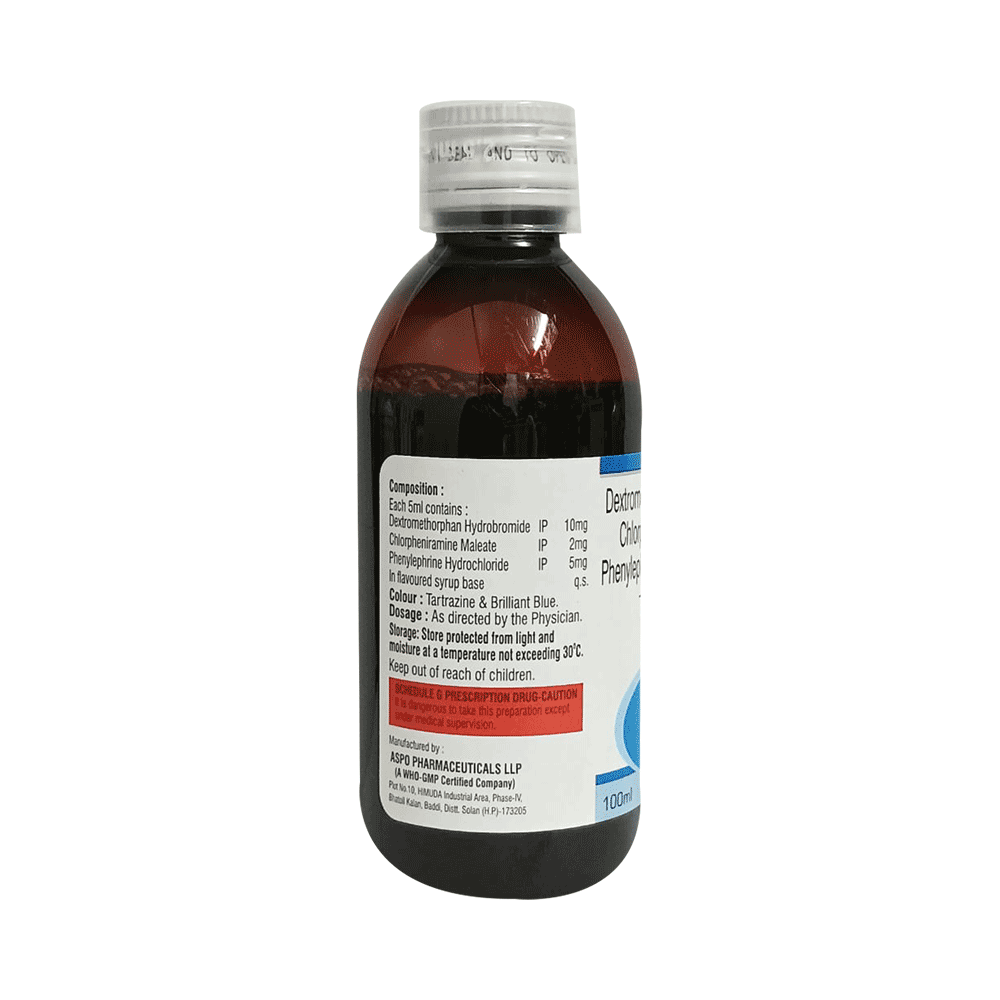 Salt Composition: Phenylephrine (5mg/5ml) + Chlorpheniramine Maleate (2mg/5ml) + Dextromethorphan Hydrobromide (10mg/5ml)