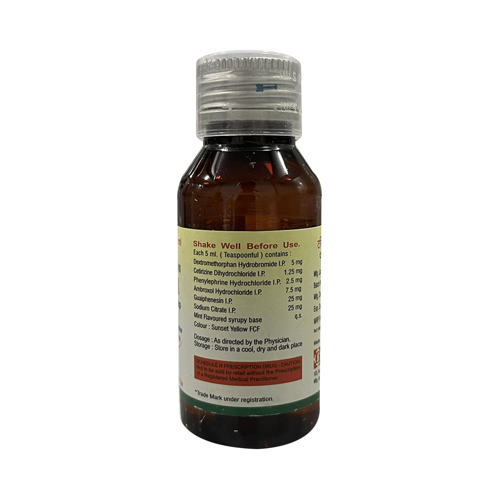 Salt Composition: Dextromethorphan Hydrobromide (5mg) + Cetirizine (1.25mg) + Phenylephrine (2.5mg) + Ambroxol (7.5mg) + Guaifenesin (25mg) + Sodium Citrate (25mg)
