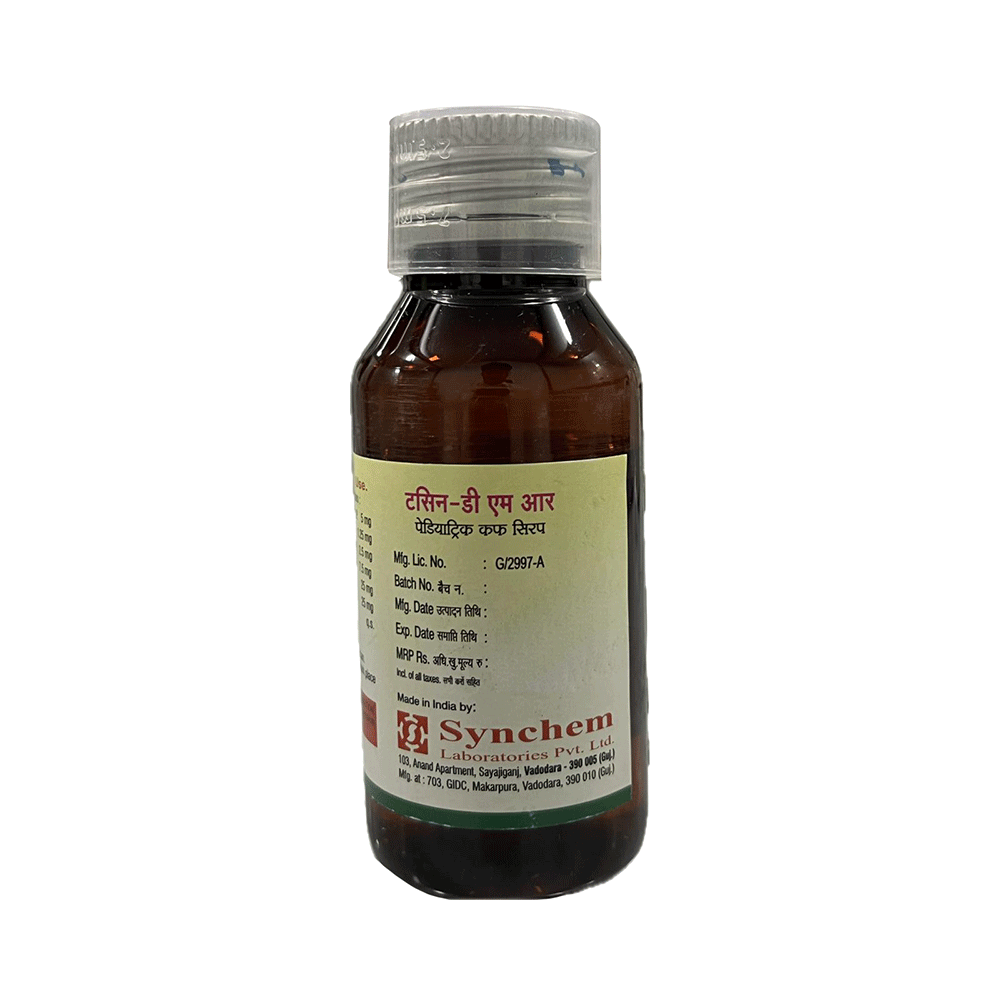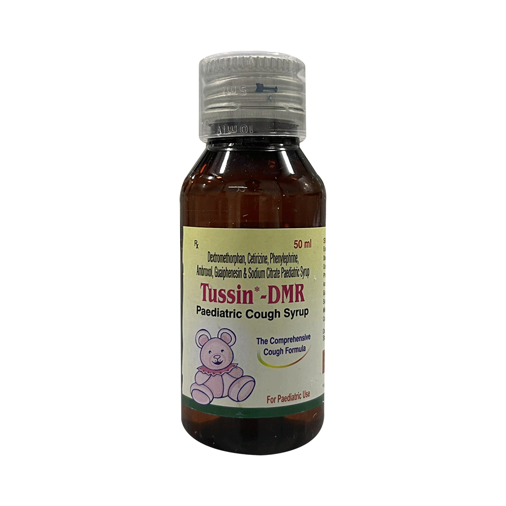 Tussin-DMR Paediatric Syrup is a combination medicine used to treat dry cough. It narrows the small blood vessels and relieves congestion or stuffiness in the nose. It also reduces allergy symptoms like watery eyes, sneezing, runny nose, and throat irritation. Tussin-DMR Paediatric Syrup may be taken with or without food in a dose and duration as the doctor advises. Your dose will depend on your condition and how you respond to the medicine. You should keep taking this medicine for as long as your doctor recommends. If you stop treatment too early, your symptoms may come back, and your condition may worsen. Let your doctor know about all other medications you are taking, as some may affect or be affected by this medicine.Common side effects of this medication include sedation (sleepiness), dry mouth, nausea, vomiting, dizziness, gastrointestinal discomfort, and headache. Most of these are temporary and usually resolve with time. Let your doctor know if you are concerned about these side effects. This medicine can also cause dizziness and sleepiness, so do not drive or do anything that requires mental focus until you know how this medicine affects you. Avoid drinking alcohol while taking this medicine, as it can make dizziness worse.Never support self-medication or recommend your medicine to another person. Keep it out of reach of children. It is beneficial to have plenty of fluids while taking this medication. Before taking it, you should tell your doctor if you have any kidney or liver diseases so that your doctor can prescribe a suitable dose for you. Pregnant or breastfeeding women should also consult their doctor before taking this medicine.