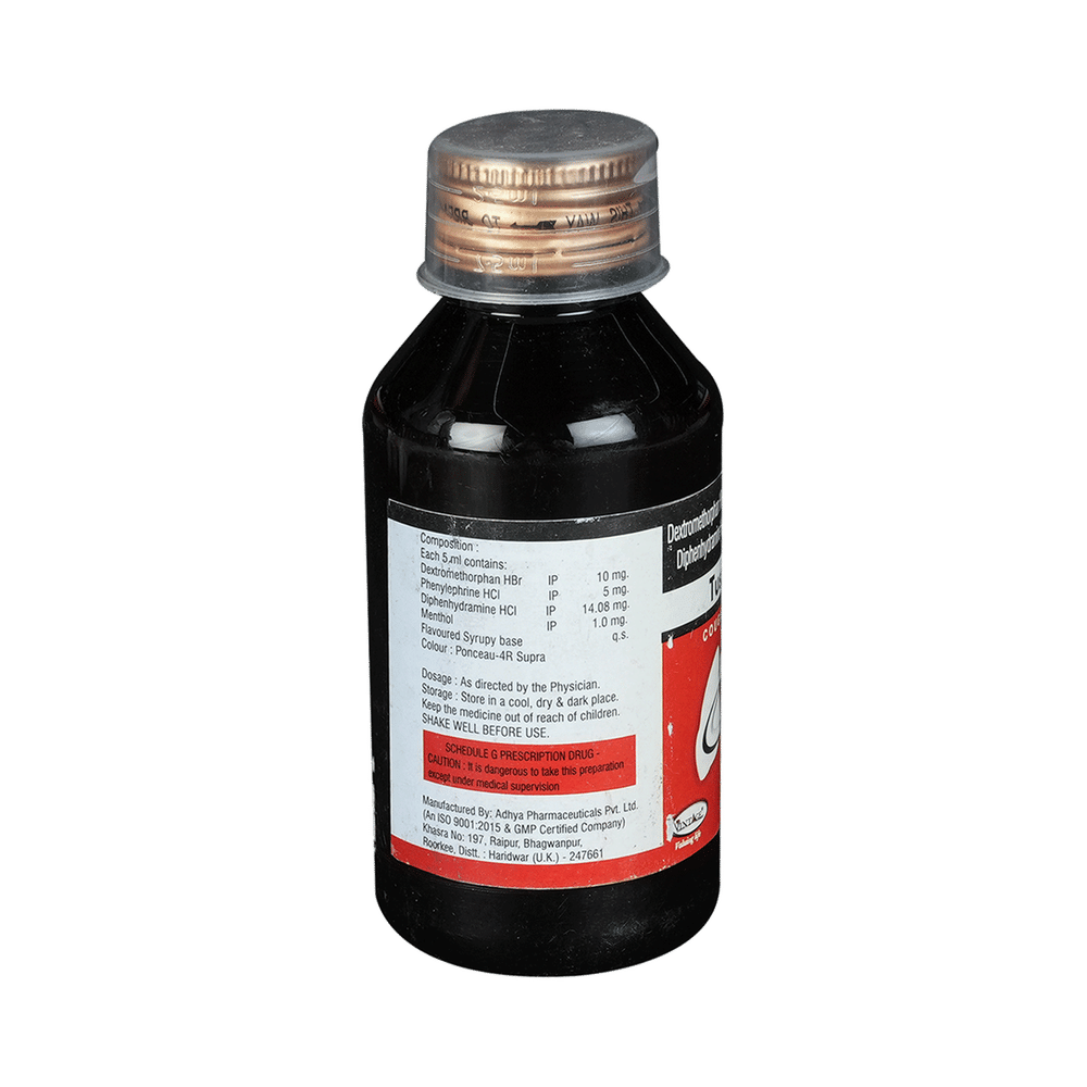 Tussiva Syrup is a medicine used in the treatment of common cold and cough. It can provide quick relief from cough and common cold symptoms like runny nose, stuffy nose, sneezing, watery eyes, and congestion or stuffiness. Tussiva Syrup is taken with or without food in a dose and duration as advised by the doctor. The dose you are given will depend on your condition and how you respond to the medicine. You should keep taking this medicine for as long as your doctor recommends. If you stop treatment too early your symptoms may come back and your condition may worsen. Let your healthcare team know about all other medications you are taking as some may affect, or be affected by this medicine.Common side effects of this medicine include headache, sedation, double vision, vomiting, diarrhea, dry mouth, and nausea. Most of these are temporary and usually resolve with time. Contact your doctor straight away if you are at all concerned about any of these side effects. This medicine can also cause sleepiness, so do not drive or do anything that requires mental focus until you know how this medicine affects you. Avoid drinking alcohol while taking this medicine as it can worsen your sleepiness.Never support self-medication or recommend your medicine to another person. It is beneficial to have plenty of fluids while taking this medication. Before taking this medicine, you should tell your doctor if you are pregnant, planning pregnancy or breastfeeding. You should also tell your doctor if you have any kidney or liver diseases so that your doctor can prescribe a suitable dose for you.