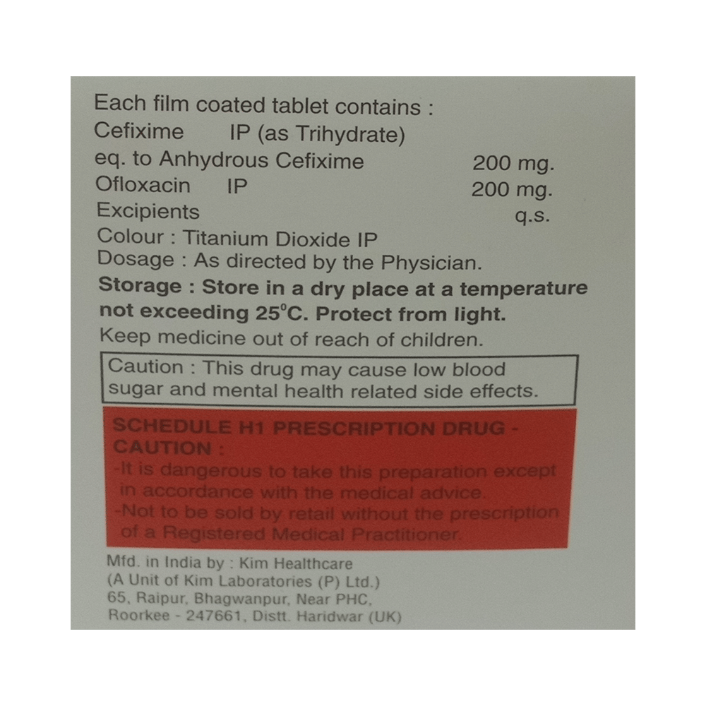 Salt Composition: Cefixime (200mg) + Ofloxacin (200mg)