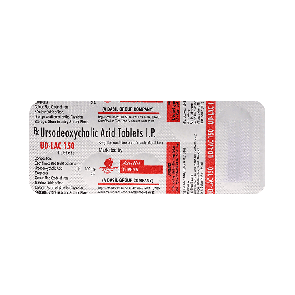 In Treatment of Gallbladder stonesUD-Lac 150 Tablet is a medicine that helps decreases the amount of cholesterol produced by your liver. It helps to break down cholesterol that has formed into “stones†in the gallbladder. It may take several months to completely dissolve the stone, so you need to take the medicine regularly and as long as the doctor has prescribed it for it to be effective. There might be other medicines and certain lifestyle changes that can reduce your cholesterol level and make gallstones less likely, consult with your doctor.In Treatment of Primary biliary cirrhosisPrimary biliary cholangitis is a type of liver disease that gradually gets worse over time. It does not always have symptoms but, over time, it can lead to liver failure. UD-Lac 150 Tablet is used to treat this condition and may be used by itself or with other medicines. It can help prevent or delay liver damage in most people, especially if you start taking it in the early stages. Once you start this treatment, you will likely be taking it for the rest of your life. To make the medicine more effective and for general health benefits, you can help yourself by stopping smoking, keeping a healthy weight, and not drinking too much alcohol.show moreshow less