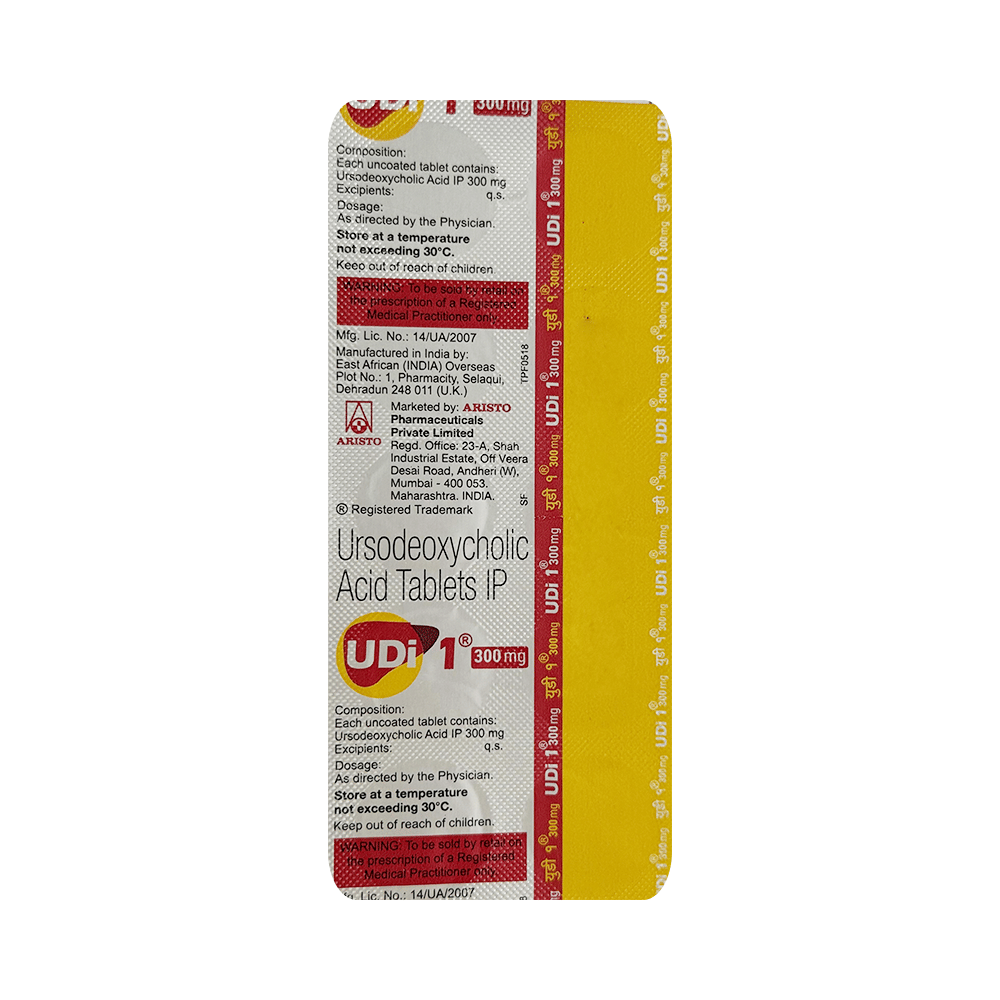 In Treatment of Gallbladder stonesUdi 1 Tablet is a medicine that helps decreases the amount of cholesterol produced by your liver. It helps to break down cholesterol that has formed into “stones†in the gallbladder. It may take several months to completely dissolve the stone, so you need to take the medicine regularly and as long as the doctor has prescribed it for it to be effective. There might be other medicines and certain lifestyle changes that can reduce your cholesterol level and make gallstones less likely, consult with your doctor.In Treatment of Primary biliary cirrhosisPrimary biliary cholangitis is a type of liver disease that gradually gets worse over time. It does not always have symptoms but, over time, it can lead to liver failure. Udi 1 Tablet is used to treat this condition and may be used by itself or with other medicines. It can help prevent or delay liver damage in most people, especially if you start taking it in the early stages. Once you start this treatment, you will likely be taking it for the rest of your life. To make the medicine more effective and for general health benefits, you can help yourself by stopping smoking, keeping a healthy weight, and not drinking too much alcohol.show moreshow less