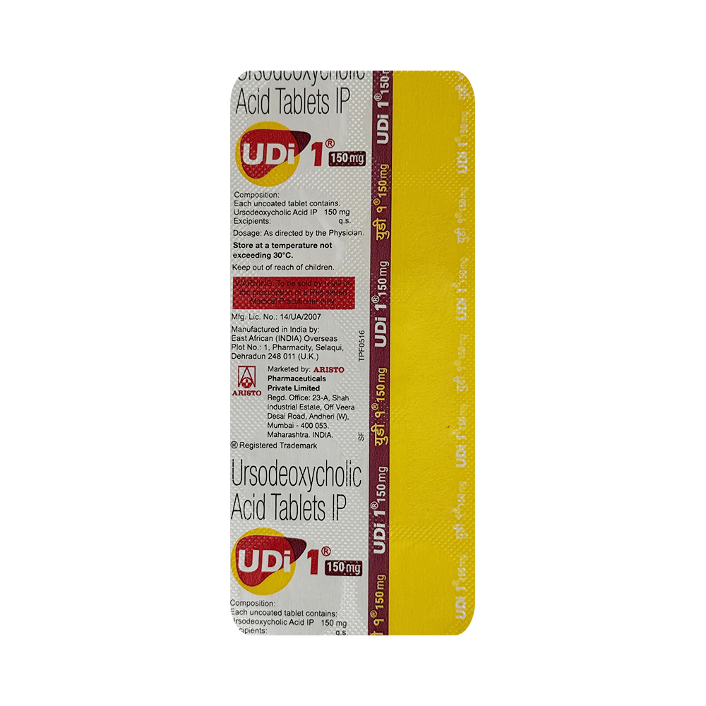 Udi 1 Tablet is a medicine used to dissolve certain gallstones and prevent them from forming. It helps break down the cholesterol that has converted into stones in your gallbladder, thereby dissolving the stones. It is also used to treat a type of liver disease called primary biliary cirrhosis. Udi 1 Tablet should be swallowed whole after a meal and with a glass of milk or water. The dose will depend on what you are being treated for and your health condition. Take it regularly to get maximum benefit, and keep taking it for as long as prescribed (several months or longer). Keep taking it even if your symptoms disappear.The most common side effects of Udi 1 Tablet are abdominal pain, diarrhea, hair loss, itching, nausea, and rash. Not everyone gets these side effects. If you are worried about them or they do not go away, let your doctor know. They may be able to suggest ways to manage them or prescribe an alternative medicine.Before taking this medicine, you should tell your doctor if you have an inflammation of the gallbladder or bile ducts, frequent cramp-like pain in your upper abdomen, coughing up blood, or gaining weight rapidly. Using this medicine can reduce or increase the effect of some other medicines, so tell your doctor about all the other medicines you are taking. Pregnant and breastfeeding women should consult their doctor before using this medicine to make sure it is safe for them.