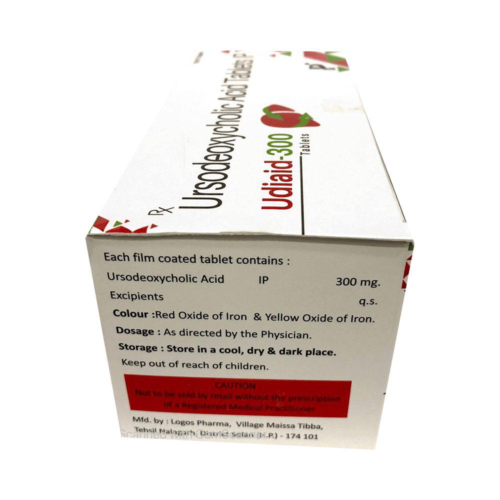 Udiaid 300 Tablet is a medicine used to dissolve certain gallstones and prevent them from forming. It helps break down the cholesterol that has converted into stones in your gallbladder, thereby dissolving the stones. It is also used to treat a type of liver disease called primary biliary cirrhosis. Udiaid 300 Tablet should be swallowed whole after a meal and with a glass of milk or water. The dose will depend on what you are being treated for and your health condition. Take it regularly to get maximum benefit, and keep taking it for as long as prescribed (several months or longer). Keep taking it even if your symptoms disappear.The most common side effects of Udiaid 300 Tablet are abdominal pain, diarrhea, hair loss, itching, nausea, and rash. Not everyone gets these side effects. If you are worried about them or they do not go away, let your doctor know. They may be able to suggest ways to manage them or prescribe an alternative medicine.Before taking this medicine, you should tell your doctor if you have an inflammation of the gallbladder or bile ducts, frequent cramp-like pain in your upper abdomen, coughing up blood, or gaining weight rapidly. Using this medicine can reduce or increase the effect of some other medicines, so tell your doctor about all the other medicines you are taking. Pregnant and breastfeeding women should consult their doctor before using this medicine to make sure it is safe for them.