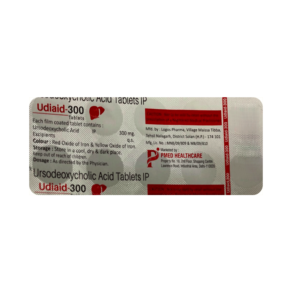 In Treatment of Gallbladder stonesUdiaid 300 Tablet is a medicine that helps decreases the amount of cholesterol produced by your liver. It helps to break down cholesterol that has formed into “stones†in the gallbladder. It may take several months to completely dissolve the stone, so you need to take the medicine regularly and as long as the doctor has prescribed it for it to be effective. There might be other medicines and certain lifestyle changes that can reduce your cholesterol level and make gallstones less likely, consult with your doctor.In Treatment of Primary biliary cirrhosisPrimary biliary cholangitis is a type of liver disease that gradually gets worse over time. It does not always have symptoms but, over time, it can lead to liver failure. Udiaid 300 Tablet is used to treat this condition and may be used by itself or with other medicines. It can help prevent or delay liver damage in most people, especially if you start taking it in the early stages. Once you start this treatment, you will likely be taking it for the rest of your life. To make the medicine more effective and for general health benefits, you can help yourself by stopping smoking, keeping a healthy weight, and not drinking too much alcohol.show moreshow less