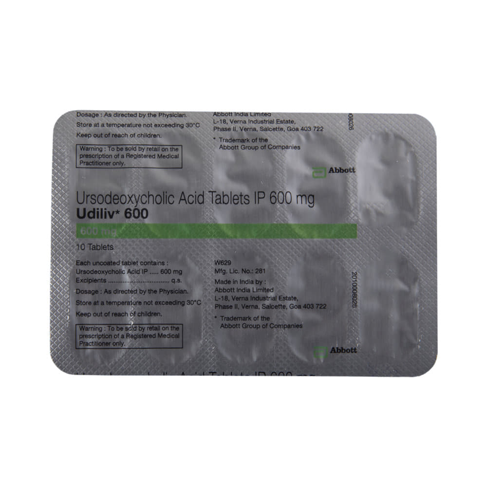 In Treatment of Gallbladder stonesUdiliv 600 Tablet is a medicine that helps decreases the amount of cholesterol produced by your liver. It helps to break down cholesterol that has formed into “stones†in the gallbladder. It may take several months to completely dissolve the stone, so you need to take the medicine regularly and as long as the doctor has prescribed it for it to be effective. There might be other medicines and certain lifestyle changes that can reduce your cholesterol level and make gallstones less likely, consult with your doctor.In Treatment of Primary biliary cirrhosisPrimary biliary cholangitis is a type of liver disease that gradually gets worse over time. It does not always have symptoms but, over time, it can lead to liver failure. Udiliv 600 Tablet is used to treat this condition and may be used by itself or with other medicines. It can help prevent or delay liver damage in most people, especially if you start taking it in the early stages. Once you start this treatment, you will likely be taking it for the rest of your life. To make the medicine more effective and for general health benefits, you can help yourself by stopping smoking, keeping a healthy weight, and not drinking too much alcohol.show moreshow less