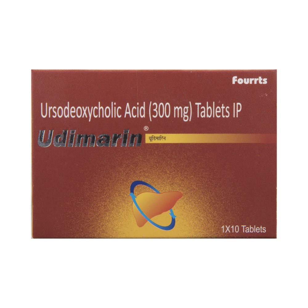 In Treatment of Gallbladder stonesUdimarin 300 Tablet is a medicine that helps decreases the amount of cholesterol produced by your liver. It helps to break down cholesterol that has formed into “stones†in the gallbladder. It may take several months to completely dissolve the stone, so you need to take the medicine regularly and as long as the doctor has prescribed it for it to be effective. There might be other medicines and certain lifestyle changes that can reduce your cholesterol level and make gallstones less likely, consult with your doctor.In Treatment of Primary biliary cirrhosisPrimary biliary cholangitis is a type of liver disease that gradually gets worse over time. It does not always have symptoms but, over time, it can lead to liver failure. Udimarin 300 Tablet is used to treat this condition and may be used by itself or with other medicines. It can help prevent or delay liver damage in most people, especially if you start taking it in the early stages. Once you start this treatment, you will likely be taking it for the rest of your life. To make the medicine more effective and for general health benefits, you can help yourself by stopping smoking, keeping a healthy weight, and not drinking too much alcohol.show moreshow less